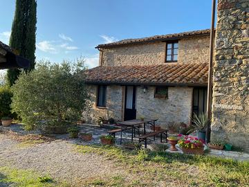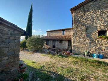 La proprietà comprende portico, dependance di 65 mq circa suddivisa in due unità indipendenti con camera, vano guardaroba e bagno e terreno con pozzo di 8 ha circa di cui 3 ha ad uso seminativo di dolce collina, 2,5 ha circa bosco, 2,5 ad uliveto con 200 piante in produzione.