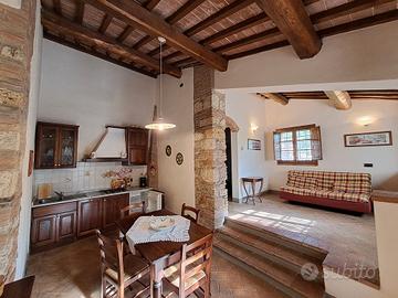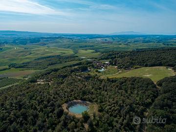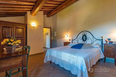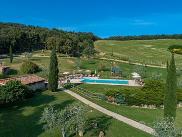 La vista è meravigliosa, il casale in pietra splendido, una bellissima proprietà formata da tre edifici frazionati in 9 appartamenti, parco, annesso forno barbecue e 21 ettari di terreno, è una azienda agrituristica con 2 ha di oliveto x 600 piante, 3 ha di seminativi e 15 ha di bosco con percorsi pedonali.