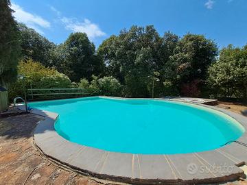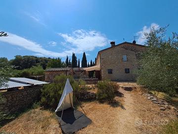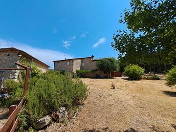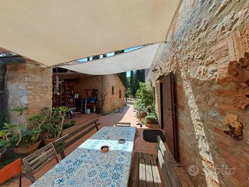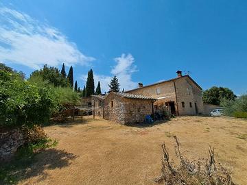 Bella proprietà nella montagnola senese, borgo in pietra formato da quattro edifici, casale di 260 mq composto al piano terra da ingresso, salone con camino, cucina pranzo, lavanderia, cantina e bagno , al piano superiore, salone/studio, 3 camere, 2 bagni, fienile di 80 mq con ampia cucina pranzo, camera e bagno nel soppalco, magazzino affiancato, dependance di 100 mq composta da salone con cucina a vista, camera, bagno, veranda, forno, ripostiglio, annesso legnaia, bella piscina, parco recintato e 3 ettari di terreno con 60 piante di olivo e bosco, ottima strada bianca per 1 km, luogo riservato.