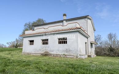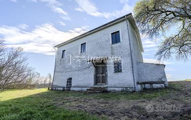 Immerso nella tranquillità della campagna, proponiamo in vendita fabbricato completamente indipendente, disposto su due livelli, circondato da ampi spazi verdi e con splendida vista aperta sul paesaggio circostante. L'immobile, della superficie complessiva di circa 194 mq, si presenta con ambienti ampi e ben distribuiti: Piano terra: -Cucina abitabile -Soggiorno -Sala da pranzo -Bagno -Locali accessori tra cui rimessa, magazzino e forno Piano primo: -Quattro camere da letto di generose dimensioni -Bagno Completa la proprietà un magazzino indipendente di 54 mq, ideale come deposito o per attività agricole. All'esterno, il punto di forza assoluto è rappresentato dal terreno: 11 ettari di terreno agricolo seminativo 10 ettari di terreno boschivo *N.B IL TERRENO PUÓ ESSERE OGGETTO DI EVENTUALI FRAZIONAMENTI IN BASE ALLE RICHIESTE DELLA PARTE VENDITRICE* La proprietà garantisce massima privacy, risultando perfetta sia come abitazione principale per chi cerca tranquillità, sia come investimento per attività agricole, agrituristiche o ricettive. La posizione dominante offre inoltre una vista aperta e suggestiva, valorizzata anche dalla presenza di ampi spazi esterni, ideali per vivere a pieno la natura. - Classe: G