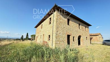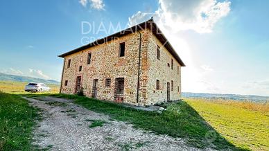 Paciano (PG): tra le dolci colline Umbre, casale del 1800 in pietra mattoni di 450 mq su due livelli composto da: 6 vani a piano terra e 5 vani a piano primo.