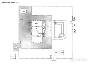 Al piano terra di 170 mq circa ingresso, ampia sala da pranzo, salone, stanza-studio, trasformabile in camera da letto, cucina in muratura, abitabile e completamente arredata, bagno con doccia e finestra, due ripostigli e ampio garage.