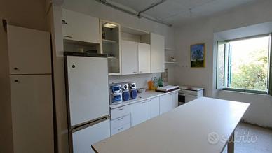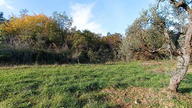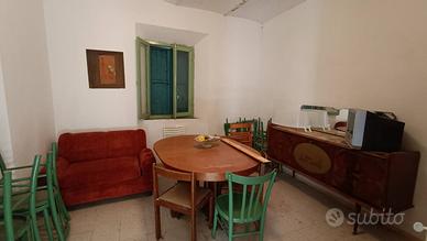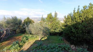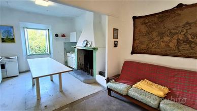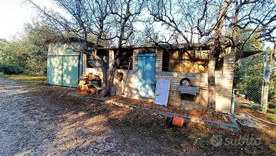 Il piano terra è di 70 mq composto da locali garage e magazzino; il primo piano di 70 mq soggiorno con cucina e camino e due camere da letto, piano sottotetto con travi in legno a vista collegato a mezzo scala interna dal piano sottostante . Il terreno di 10 ettari circa dotato di sorgente e vasca per la raccolta delle acque è piantumato con 900 alberi di ciliegio per la produzione di legna, e 450 di ulivo.