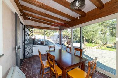 Vero valore aggiunto della proprietà è lo spazio esterno di oltre 5.000 mq che circonda l'intera proprietà caratterizzato da una splendida e curata piscina a sale con ampio solarium ed angolo bar, oltre a un patio esterno che è ideale per la colazione, i pranzi e le suggestive cene estive. Una grande zona parcheggio, diverse terrazze e due piccoli depositi completano le pertinenze dell'immobile.