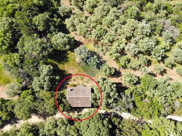 Il rustico è circondato da un ampio terreno, in parte boschivo ideale per godersi la natura e il paesaggio circostante, e dotato di uliveto recente e mandorleto, e pozzo autonomo.
