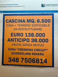 Cascina con terreno mq 6000 Edificabile Casa mq 300 da ristrutturare Prezzo 138000 acconto 38000 Resto senza mutuo Finanziamento personalizzato Con riserva di informazioni. Giovanni Biondo 348 750 6814 Atto vende Privato