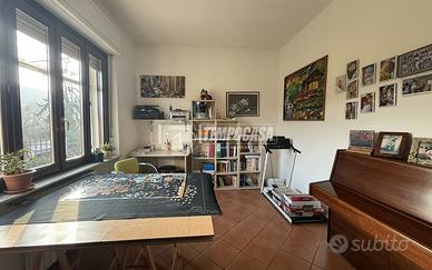 Al piano superiore, la proprietà offre tre camere da letto, ciascuna con il proprio bagno privato, per garantire il massimo della privacy e del comfort a ogni membro della famiglia o agli ospiti. Una sala accogliente, ben illuminata, si apre su un ampio terrazzo, perfetto per godersi il panorama circostante o per rilassarsi all'aria aperta.