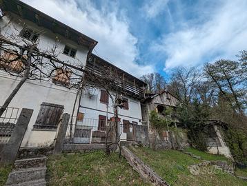 3. Nella stessa localitá vendesi rustico in sasso e muratura rivestito in legno di castagno su due piani oltre ad un sottotetto abitabile predisposto per taverna, cucina con soggiorno, ripostiglio, due camere e due bagni, ricovero attrezzi e legnaia.