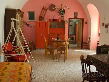 affitto casetta bianca, antica masseria ottocentesca ristrutturata, composta da due mini appartamenti (affittabili separatamente a 400 e 500 euro al mese o insieme) composti ciascuno da soggiorno, bagnetto, cucinino, camera da letto, veranda, ampio giardino, vista mare, a circa 200 metri dal mare, immersa nella natura, tra ulivi secolari, con accesso su strada comunale asfaltata, parzialmente arredata, classe energetica G, per amanti della natura.