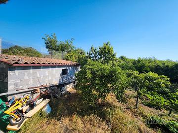 Vendesi a Stazzo, in un oasi di verde e di pace, con vista sull'Etna ed a pochi passi dal mare, casetta di 60 mq., con magazzino di 18 mq e terreno coltivato a limoni di 1550 mq.