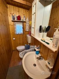 Bungalow con roulotte in camping International posti letto 5 +1 composto da 2 camere matrimoniali una con letto matrimoniale + lettino l'altra con letto matrimoniale o 2 letti separati cucina + veranda chiusa dove si può mangiare o all'occorrenza dormire e posto esterno con tenda retrattile bagno no doccia sito a Porlezza prov di Como sul lago di Lugano costo da Aprile a fine Ottobre 2950 €