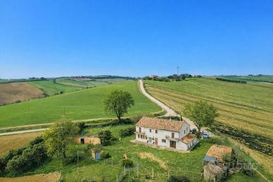 Casolare a di campagna bifamiliare abitabile dalla superficie di 380 mq. commerciali (361 mq. catastali categoria A/3 abitativo + 91 mq. catastali magazzini/cantine categoria C/2), con corte circostante. Posto in buona posizione con una panoramicità a 360° su tutte le vallate circostanti. Proprietà adatta a progetti per la realizzazione di b&b o struttura ricettiva.