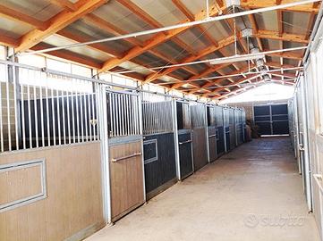 Le strutture equestri sono costituite da una scuderia di recente costruzione (2011) in muratura, con superficie di 350mq allestita al suo interno con 14 box di m 3.50x3.50, locale selleria, due spazi di lavaggio, magazzino. Sopra di essa è collocato impianto fotovoltaico da 20 Kw.