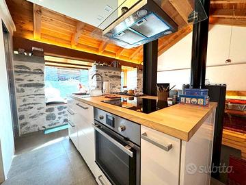Casa indipendente ricavata dal recupero di un antico fienile nel borgo storico di La Ville a Chamois, perla delle Alpi raggiungibile solo con la funivia. Qui le auto non circolano e la vita scorre tra silenzio e natura, con sentieri panoramici ideali per le escursioni estive e piste da sci che animano il borgo in inverno.