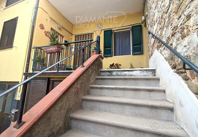 -Piano primo: ingresso tramite scala esterna, soggiorno con camino, cucina abitabile e bagno