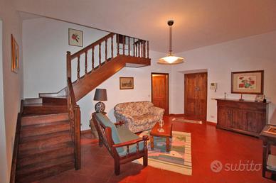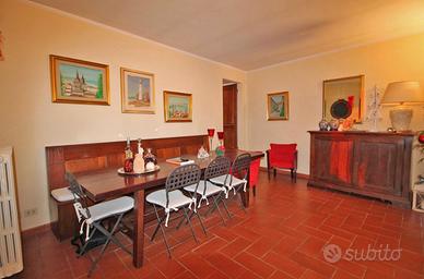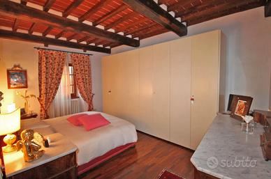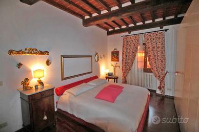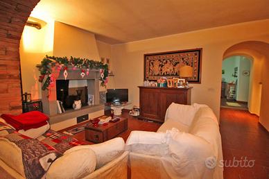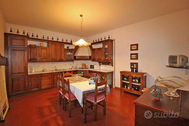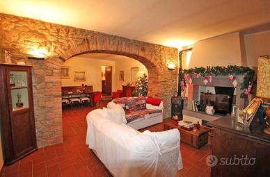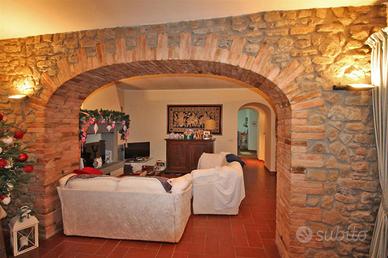 Sulla collina di Cortona, proponiamo la vendita di casale risalente al '600 con bellissima vista panoramica sul lago Trasimeno e sulla Valdichiana, circondato da un giardino e piazzale di circa mq. 8000 con olivi e piante da frutto, possibilità di realizzare una piscina, interamente delimitati con doppio accesso. Il casale, recentemente recuperato, ha una superficie complessiva di mq. 300 suddivisa in due unità abitative indipendenti:appartamento al piano terreno di mq. 150 composto da porticato esterno con accesso diretto al soggiorno con caminetto, cucina abitabile, due camere, due bagni ed annesso un antico forno restaurato. Appartamento al piano primo di mq. 150 con accesso mediante scala esterna e loggiato che conducono ad un soggiorno con caminetto, cucina abitabile, due camere, due bagni e scala interna di collegamento all'antica torretta nella quale è stata ricavata una ulteriore camera. Entrambe le unità presentano le tipiche caratteristiche dello stile toscano come i pavimenti in cotto e i solai in travi di legno oltre a rifiniture di pregio come la pavimentazione in parquet della zona notte. Completa la proprietà una dependance di mq. 100, ristrutturata, composta da soggiorno con angolo cottura, camera, bagno e lavanderia/vano tecnico. Prezzo trattabile.