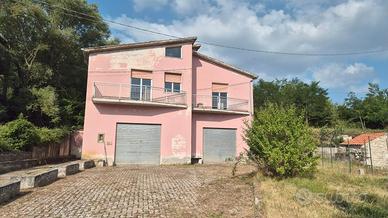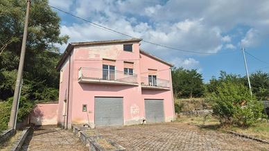Fabbricato indipendente con terreno disposto su due livelli: piano terra garage/deposito e accessori; piano primo appartamento di 4 vani con servizio. Al piano superiore ulteriore vano mansarda. Terreno e patio annessi con comodo accesso dalla strada.