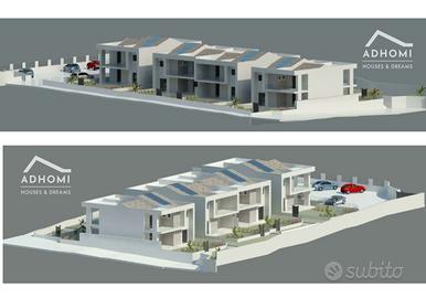 Il terreno si estende su una superficie totale di 2.400 m², con un'area edificabile di 850 m² già approvata per la costruzione di 8 unità bifamiliari bilivelli, ciascuna dotata di 2 posti auto.
