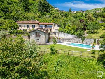 Rif:R06408SRVI (121107830) - Immerso nelle dolci colline ai piedi dello storico villaggio di Verrucole, nella pittoresca regione della Garfagnana, si trova questa eccezionale proprietà: un elegante casale in ottime condizioni che può essere utilizzato sia come lussuosa residenza privata che come alloggio per vacanze di alta qualità. Il villaggio di Verrucole è noto soprattutto per il suo imponente castello medievale, che vigila maestoso sulla valle e offre una delle più belle viste panoramiche della regione. È proprio in questo contesto privilegiato che si trova la proprietà, in assoluta tranquillità e privacy. L'edificio principale, una casa padronale costruita nel 1995, colpisce per la sua costruzione solida e l'aspetto elegante. Ospita non solo uno spazioso appartamento principale, ma anche una seconda unità abitativa completamente attrezzata, ideale per gli ospiti o per gli affitti turistici. Nelle immediate vicinanze si trova un secondo edificio, attualmente utilizzato come casa vacanze. È completamente attrezzato e pronto per la commercializzazione turistica o per l'uso da parte di familiari e amici. Un altro elemento significativo della proprietà è un grande rudere sul terreno da demolire e ricostruire. Qui si potrebbe costruire una terza villa indipendente: un progetto promettente che creerebbe ulteriore spazio abitativo o una redditizia sistemazione per le vacanze. Un pratico capannone completa la struttura esistente e offre spazio per attrezzature, veicoli o uso agricolo. La proprietà è completata da due piscine di prima classe, distribuite strategicamente sul terreno. Una appartiene direttamente alla casa vacanze, mentre l'altra si trova in una zona più tranquilla della proprietà ed è a disposizione della casa principale. Entrambe le piscine non solo offrono refrigerio nelle giornate calde, ma anche viste spettacolari sulla natura circostante. La pr - Classe: G - IPE: 175.00 kWh/mq anno