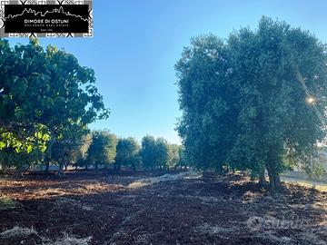 L'agenzia immobiliare DIMORE di OSTUNI - MELISSANO REAL ESTATE Propone in Vendita immerso nella pittoresca campagna Ostunese, in un rigoglioso uliveto secolare di superficie pari a 6500mq, splendido complesso immobiliare costituito da un gruppo di trulli con adiacente locale adibito un tempo a stalla per il ricovero animali.