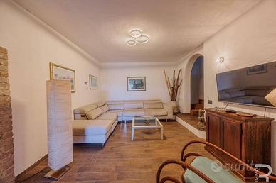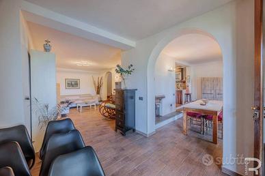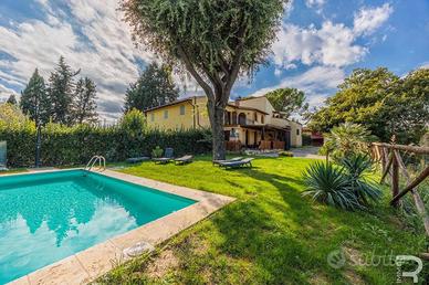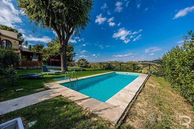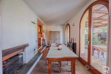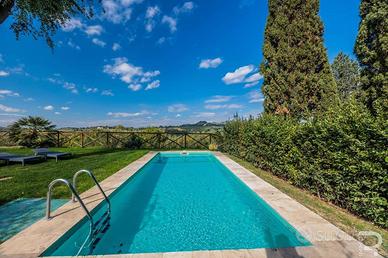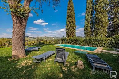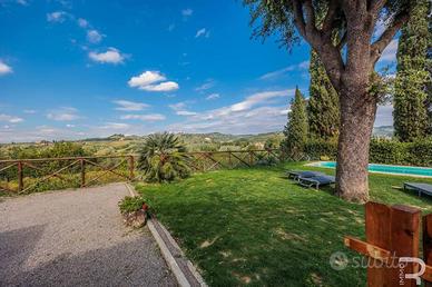 Rif:R06735CERU (123703879) - Questa incantevole proprietà fa parte di un meraviglioso rustico e affascina per la sua atmosfera autentica e la vista incomparabile sulle dolci colline toscane. Un cancello privato conduce alla proprietà, che garantisce assoluta privacy e non presenta alcuna area comune: un luogo dove godersi indisturbati la tranquillità della natura. Il meraviglioso giardino di circa 500 mq con la sua ampia terrazza e una veranda coperta invita a godersi il sole toscano o a trascorrere le tiepide serate estive all'aperto. Il fiore all'occhiello è senza dubbio la piscina privata in travertino (9 x 3 m, profondità 1,3 m), che si integra armoniosamente nel paesaggio e offre una vista mozzafiato. Al piano terra si trova l'accogliente zona giorno con bagno, luminosa grazie alle ampie finestre e con accesso diretto al giardino, ideale per una vita rilassata in armonia con la natura. La zona notte si estende al primo piano e alla mansarda e dispone di tre camere da letto e un altro bagno. Particolarmente affascinante è l'ampia terrazza con pavimento in cotto al primo piano, da cui si può godere di una vista panoramica sul giardino e sulle colline circostanti. Le moderne dotazioni includono un impianto fotovoltaico con batterie di accumulo, che garantisce un approvvigionamento energetico sostenibile e rende la casa tecnicamente all'avanguardia. Questa proprietà unisce il fascino rustico dell'architettura tradizionale toscana ai comfort moderni e offre il rifugio ideale per chi cerca tranquillità, natura e l'autentico stile di vita italiano. - Classe: G - IPE: 175.00 kWh/mq anno