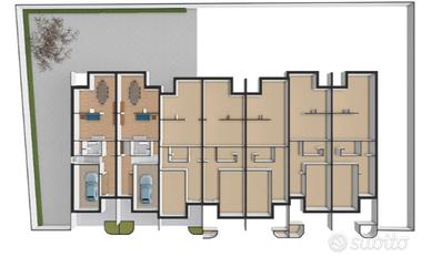 Vendiamo a Mestre in via Mutinelli, in contesto residenziale di nuovo sviluppo a cinque minuti dal centro, lotto di terreno edificabile di mq. 2.150 con progetto approvato per la realizzazione di n.7 villette a schiera, volume di progetto mc 3.895, di dimensioni generose e composte da ampia zona soggiorno/pranzo con angolo cottura, 4 bagni di cui due ad uso esclusivo delle camere, 3 camere, una con cabina armadio, ampio sottotetto multiuso, garage e scoperto esclusivo.