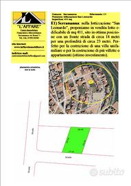 E1) Serramanna: nella lottizzazione "San Leonardo", proponiamo in vendita lotto edificabile di mq 411, sito in ottima posizione con un fronte strada di circa 18 metri per una profondità di circa 23 metri. Perfetto per la costruzione di una villa unifamiliare o per la costruzione di più villette o appartamenti (ottimo investimento).