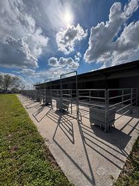 Proponiamo splendida struttura ben attrezzata, che dispone di 40 box (3.20x3.20) con abbeveratoi e mangiatoie, 26 dei quali con recinto integrato (6x3.20), un campo coperto (33x66) e uno scoperto (30x60), tondino (d 17) e box della fattrice (4x4) con recinto (15x15).