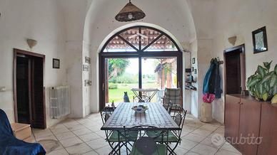 Valdoma Immobiliare propone in esclusiva, nel cuore del Salento, a soli 3 km dal porto turistico di San Foca, una masseria autentica con volte a stella, immersa nel silenzio e nella luce della campagna. Qui la terra respira. La proprietà si estende per circa 20 ettari, abbracciati da 2 km di muretto a secco con rete superiore. Un confine solido, che custodisce privacy e bellezza. Il corpo centrale risale al XIV secolo. È stato reso abitabile nel 2014, rispettando l'anima originaria. Gli ambienti si dispongono a L: 10 vani ampi, volte alte fino a 4,5 metri, due bagni, per circa 358 mq coperti. Gli impianti elettrico, idraulico e di riscaldamento sono funzionanti. Il lastricato solare è in perfetto stato. Accanto alla masseria, un capannone di 300 mq con altezze fino a 6,5 metri. Spazio ideale per attività agricole, deposito o nuovi progetti. La terra è già produttiva: 3.500 ulivi Leccino reimpiantati nel 2023, ficheto e seminativo. All'esterno, un giardino di 800 mq con irrigazione automatica accoglie la casa. Tra gli angoli più suggestivi si trovano antiche arnie in tufo, presenza tipica delle masserie più antiche, memoria viva di un tempo in cui ogni angolo aveva una funzione. Completano la proprietà un frutteto di 3.000 mq e un'area di 1.500 mq con strutture per quattro serre, già dotate di impianti idrici ed elettrici. La masseria è autonoma: energia elettrica da rete, pozzo artesiano certificato, riscaldamento con caldaia a policombustibile con radiatori. Possibilità di installare serbatoio GPL. Tre cancelli scorrevoli garantiscono accessi distinti e riservatezza. All'interno, tre strade asfaltate rendono ogni spostamento semplice. Si raggiunge con facilità: 45 minuti dall'aeroporto di Aeroporto di Brindisi, 15 km dalla stazione ferroviaria di Lecce. Non è solo una proprietà. È un luogo con radici profonde. È terra, luce, silenzio. Perfetta per chi sogna una residenza privata di charme o una struttura turistico-ric