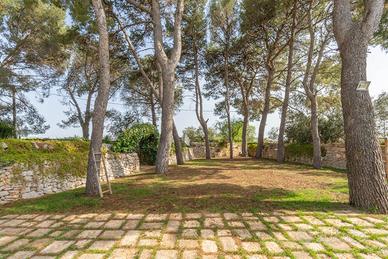 L'accesso alla masseria avviene attraverso un incantevole viale di pini secolari.