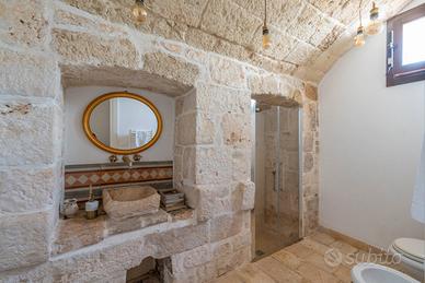 Circondata da uliveti e campi fioriti di circa 12.000 metri, questa masseria, con il tempo, e a seguito di una importante ristrutturazione conservativa, è stata ampliata fino a diventare la splendida struttura in pietra che oggi ci accoglie. Attualmente utilizzata come struttura ricettiva ed eventi privati.