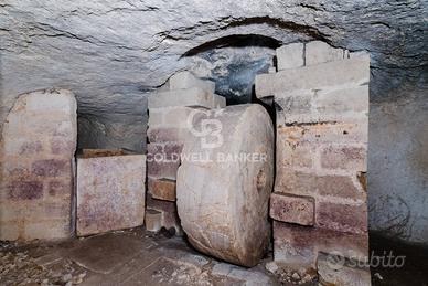 Al piano terra trovano posto ambienti di deposito di 131 mq e un laboratorio di 107 mq, mentre nel cuore della proprietà si apre la suggestiva cantina di circa 200 metri quadrati che custodisce un frantoio ipogeo con le antiche macine in pietra, una vera testimonianza della tradizione olearia salentina.