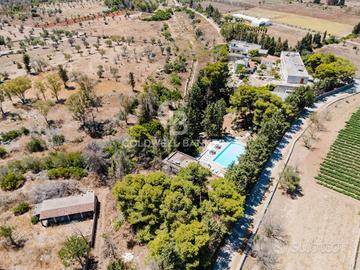 Circondata da pini secolari e immersa in un contesto di assoluta tranquillità, la proprietà si estende su una superficie complessiva di circa 20.500 mq, dove la parte della superficie calpestabile occupa circa 1500 mq, distribuita su più corpi di fabbrica, con ambienti ampi, volte a stella e dettagli architettonici autentici, perfettamente conservati, il terreno è costituito da pineta e macchia mediterranea, con bellissime rocce affioranti che impreziosiscono lo spazio esterno che collega le camere al giardino.