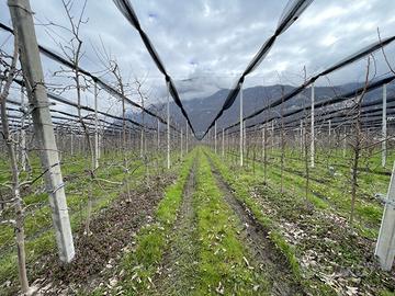 Tra Salorno e Laghetti, proponiamo in vendita un melo con alberi delle varietà Gala, Golden e Crimson Snow - i filari sono esposti in direzione nord-sud, su una superficie di circa 5.953 m².