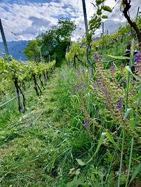 La proprietà comprende un frutteto di mele e un vigneto coltivati biologicamente che coniugano la massima qualità e sostenibilità.