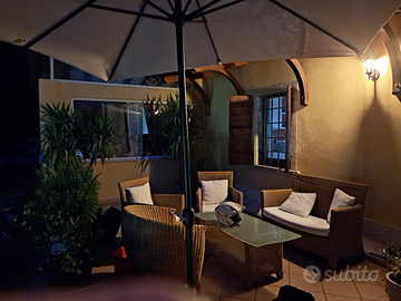 Al secondo piano un bellissimo Open space della stessa metratura comprendente camera bagno ed eventualmente già presenti attacchi per una cucina. Per l'irrigazione del giardino si utilizza l'acqua del consorzio che consente di risparmiare notevolmente. La stufa a legna il camino ed inoltre una stufa a pellet consentono di scaldare l'intera casa senza dover utilizzare il riscaldamento che comunque è presente.