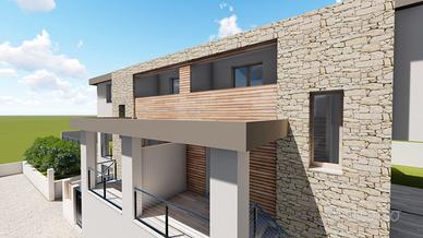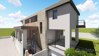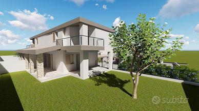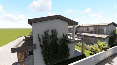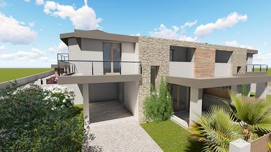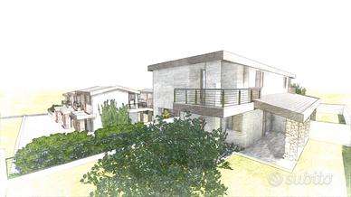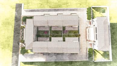 Il render mostra ciò che può essere realizzato all'interno del lotto con uno stradello interno che permette l'accesso ad ogni villetta.