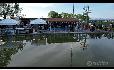 Pesca sportiva (attualmente circolo ACLI) con bar, ristorante e licenza per ristorazione. Si tratta di due cave (vedi disegno allegato) su di una superficie di 18000 mq con ristorante, bar, cucina e tettoia. Possibilità di fare pranzi ,cene e feste anche all'aperto. La cava si trova a Isola Rizza di Verona a 5 minuti dall'uscita di Roverchiara nord sulla transpolesana. Solo vendita, per info telefonare alla proprietaria sig. Maria al n. 3492729807, oppure venite a vederla,giorno di chiusura giovedi