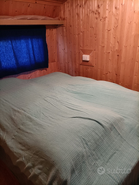 Vendo piazzola campeggio Nice Garden. 5 posti letto di cui 3 nella roulotte e 2 nel casotto. La roulotte è completamente rivestita in legno. Cucina esterna in muratura. Bagno completo con lavandino, tazza/bidet e doccia. Costo annuale campeggio 3000€