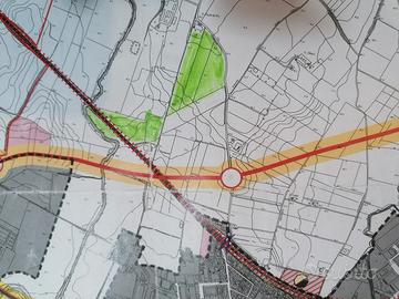 Attualmente il terreno è dichiarato agricolo, ma è in progetto la realizzazione della tangenziale che passerà vicino come da pianta allegata.(il podere evidenziato in verde, il tracciato della tangenziale di futura realizzazione in rosso). Per questo motivo la richiesta per i due lotti è elevata. Non vendiamo come terreno agricolo ma sulla base di possibili sviluppi futuri legati alla realizzazione della tangenziale. Valutiamo sicuramente le vostre proposte a partire dalle nostre aspettative.