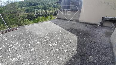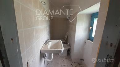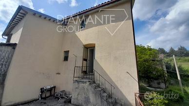 Sellano (PG), Località Vio: Porzione di casale di 150 mq su tre livelli con magazzini, cantina e garage a piano terra, soggiorno con angolo cottura, sala, terrazza e bagno a piano primo, due camere e bagno a piano secondo.
