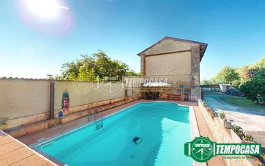 L'ampia terrazza panoramica con splendida vista e la piscina privata sono ideali per momenti di relax e convivialità. Circa un ettaro di terreno a disposizione completamente recintati e corredati di pozzo per irrigazione.