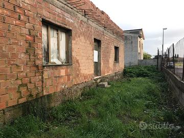 NEL TERRENO, COMPLETAMENTE RECINTATO, AL MOMENTO INSISTONO UN FABBRICATO CIVILE ABITAZIONE AL PIANO TERRA, PIU' UN CORPO ACCESSORIO A LOCALI DI SGOMBERO E/O MAGAZZINI, RIPOSTIGLIO ETC.