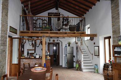 ABITAZIONE PADRONALE RISTRUTTURATA, composta da salone con ampia vetrata panoramica, camino in pietra e travi a vista:, cucina, soppalco, due camere e due bagni, box e posti auto.