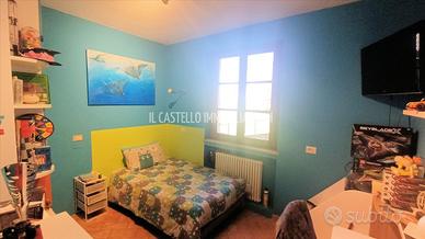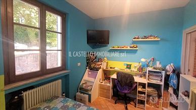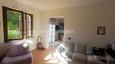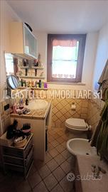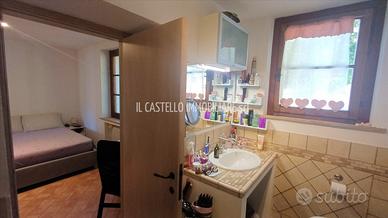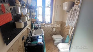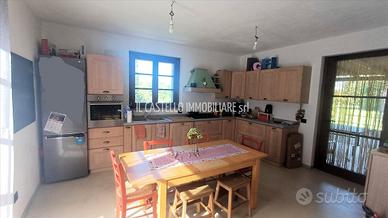 Al Piano Terra (circa 121 mq) troviamo un appartamento con soggiorno con caminetto, grande cucina / pranzo, bagno con doccia, tre camere, di cui una con bagno e vasca. Entrambi i bagni sono finestrati, centrale idrica nel sottoscala. Riscaldamento autonomo a gpl e con termo-camino a legna (anche per acqua calda sanitaria);