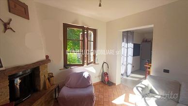 SARTEANO (SI), alla quota di circa 320 m s.l.m., a circa 5 km dal paese ed a 3 km dal casello autostradale A1 di Chiusi - Chianciano Terme, vendesi villa di campagna ristrutturata in dolce collina, costituita da un edificio princpale (diviso in due appartamenti, uno per piano) e da un annesso. Il terreno, di 4750 mq circa, è recintato e sistemato a prato con alberi da frutto.