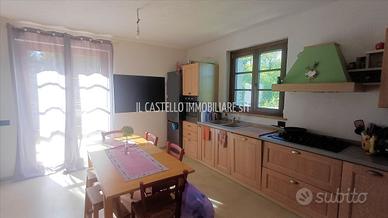 - Primo Piano (circa 98 mq), accesso da scala esterne, ingresso da loggia, ripostiglio (con predisposizione per un secondo bagno), soggiorno, cucina / pranzo, due camere e bagno con doccia. Riscaldamento autonomo a gpl o con idro-stufa a pellet.