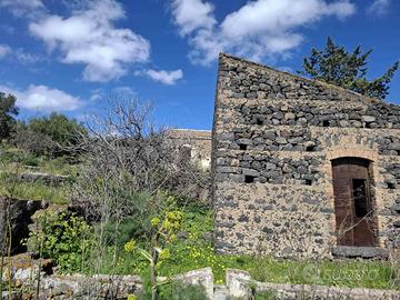 All'interno della proprietà insistono fabbricati rurali regolarmente esistenti, epoca di costruzione risalente alla metà del 1800, realizzati con struttura portante in muratura con blocchi di pietra lavica, le coperture a falde inclinate risultano realizzate con orditura lignea in parte dissestati e la cui consistenza e stato manutentivo potranno essere oggetto di verifica tecnica e valorizzazione progettuale.