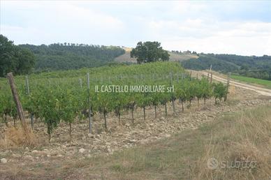 SAN CASCIANO DEI BAGNI (SI), loc Palazzone, alla quota di 408 m s.l.m. ed a 9 km dal casello autostradale A1 di Fabro, vendesi terreno agricolo della superficie complessiva di mq 36.000 circa (3,6 ettari) suddiviso in due porzioni a breve distanza l'una dall'altra. Comoda strada di accesso ben tenuta, posizione assolata e panoramica. Il terreno è adibito principalmente a vigneto (ha 1,85), in minor parte ad uliveto (ha 1,40) e restante incolto e boschivo. Gli impianti di vigneto ed uliveto sono abbastanza recenti, le piante di ulivo sono circa 270. La zona di Palazzone risulta essere particolarmente vocata per la produzione di uve per la vinificazione! Richiesta: Euro 60.000 trattabili. Rif. TA30.