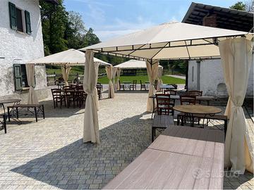 L'agriturismo è costituito da: ristorante con 120 posti a sedere interni e 150 esterni, disposto su due livelli suddivisi in 3 sale con caldaia a pellet e predisposizione per aria condizionata, cucina di 100 Mq, tre bagni di cui uno disabili e locale celle, sono inoltre presenti 7 parcheggi interni per i dipendenti e circa 50 posti auto esterni per clienti; 8 box per cavalli, 6 pollai/ricoveri in cui gli animali sono allo stato semibrado, una stalla di 10 bovini, 1 sala parto suini, 1 magazzino con deposito attrezzature e spazio per ricovero macchinari agricoli, tre box e piazzale in cui è possibile realizzare piscina.